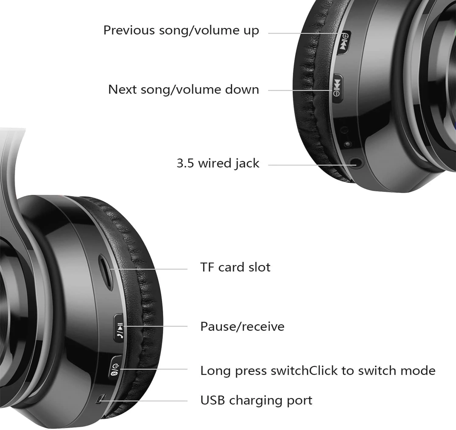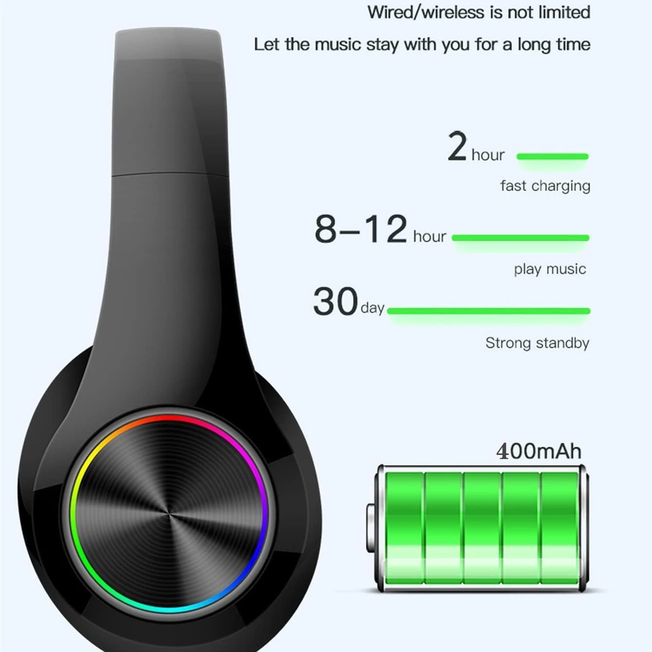 - Colorful RGB Backlight: This lightweight bluetooth headphone over ear is made of ergonomic shape with cool RGB LED around the outside of the earpad, offer multicolor slow flashing auto switching backlight when using, more fun when enjoying and dancing with music, more cool when playing game