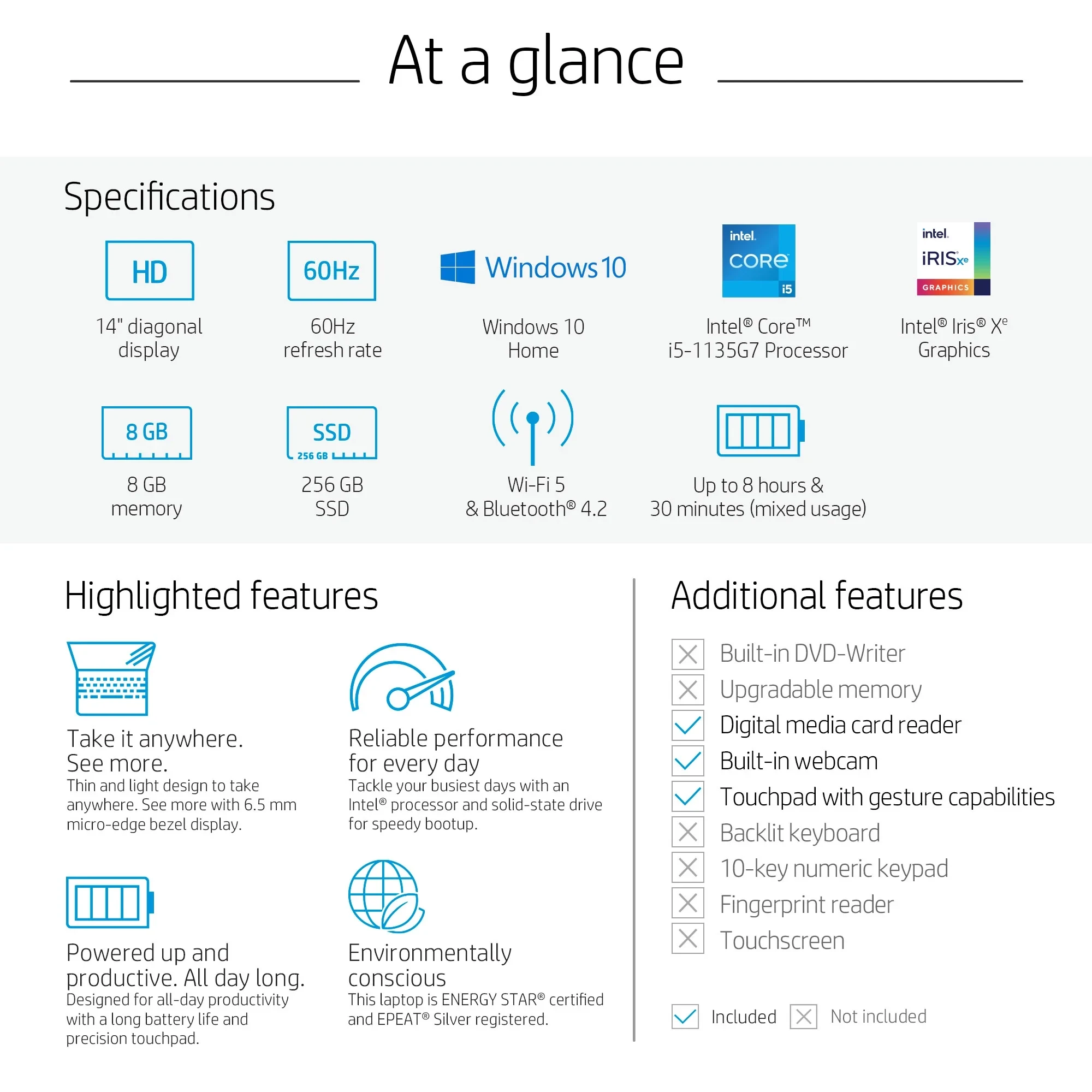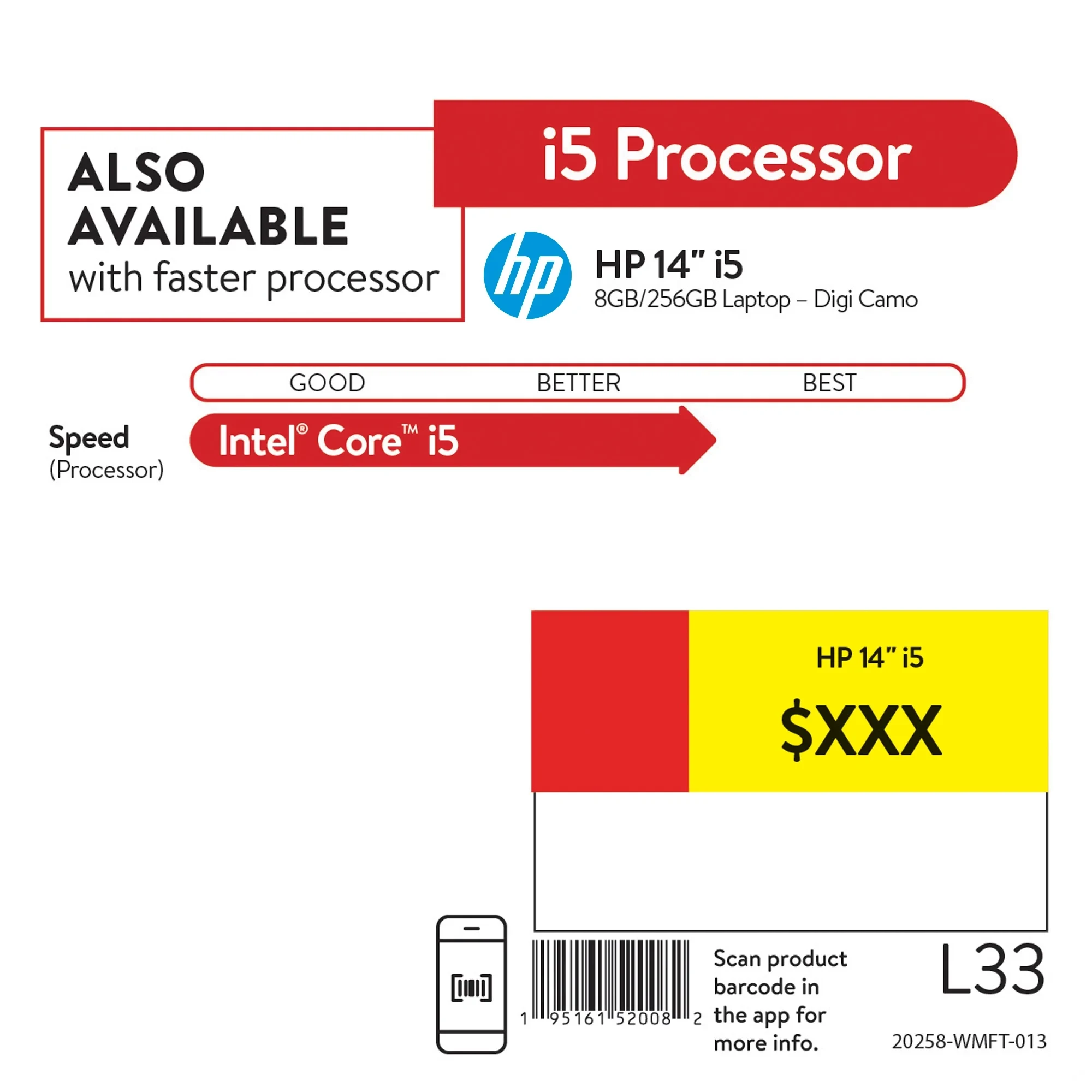 This HP 14 inch laptop is a reliable home office laptop designed to keep you productive and entertained, no matter where you go. The lightweight laptop is less than three and a half pounds, with long battery life and HP Fast Charge to last all day. Get things done fast with high performance, instant responsiveness and best-in-class connectivity on this Intel 11th Gen i5 laptop. The Intel quad-core laptop with Windows 10 is powerful enough to accomplish daily tasks and work projects, while the 256 GB solid-state drive performs up to 15x faster than a traditional hard drive. Enjoy your favorite shows and movies on the micro-edge display, packing a 14-inch diagonal HD screen. Integrated Intel Iris Xe graphics give you impressive performance for creating, gaming and entertainment with the convenience of a slim and thin laptop to better fit your busy lifestyle. Stay connected by video chatting on the HD camera with dual array microphone. The camo pattern is a Walmart exclusive. The Windows 11 upgrade will be delivered to qualifying devices late 2021 into 2022. Timing varies by device. Certain features require additional hardware (see aka.ms/windows11-spec).