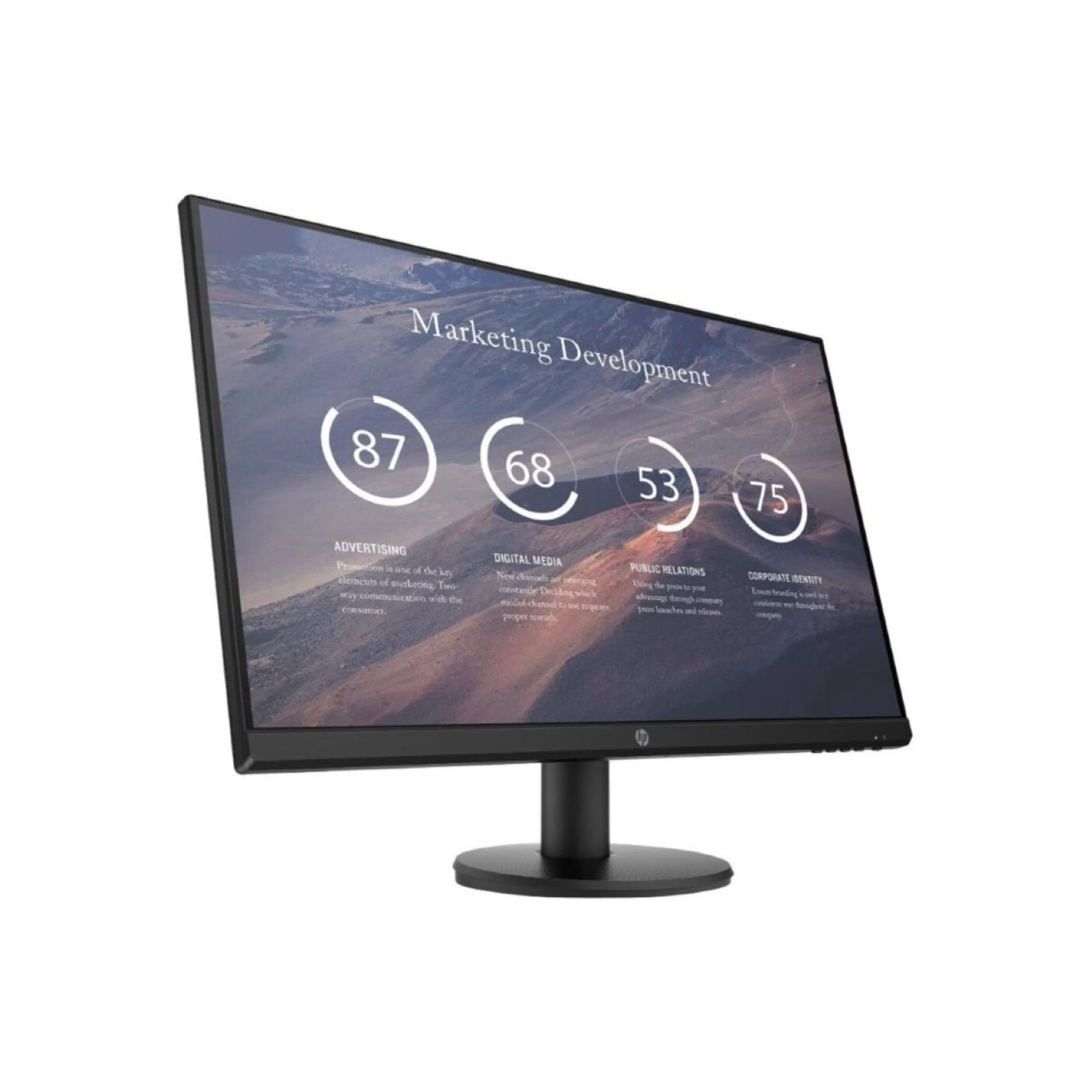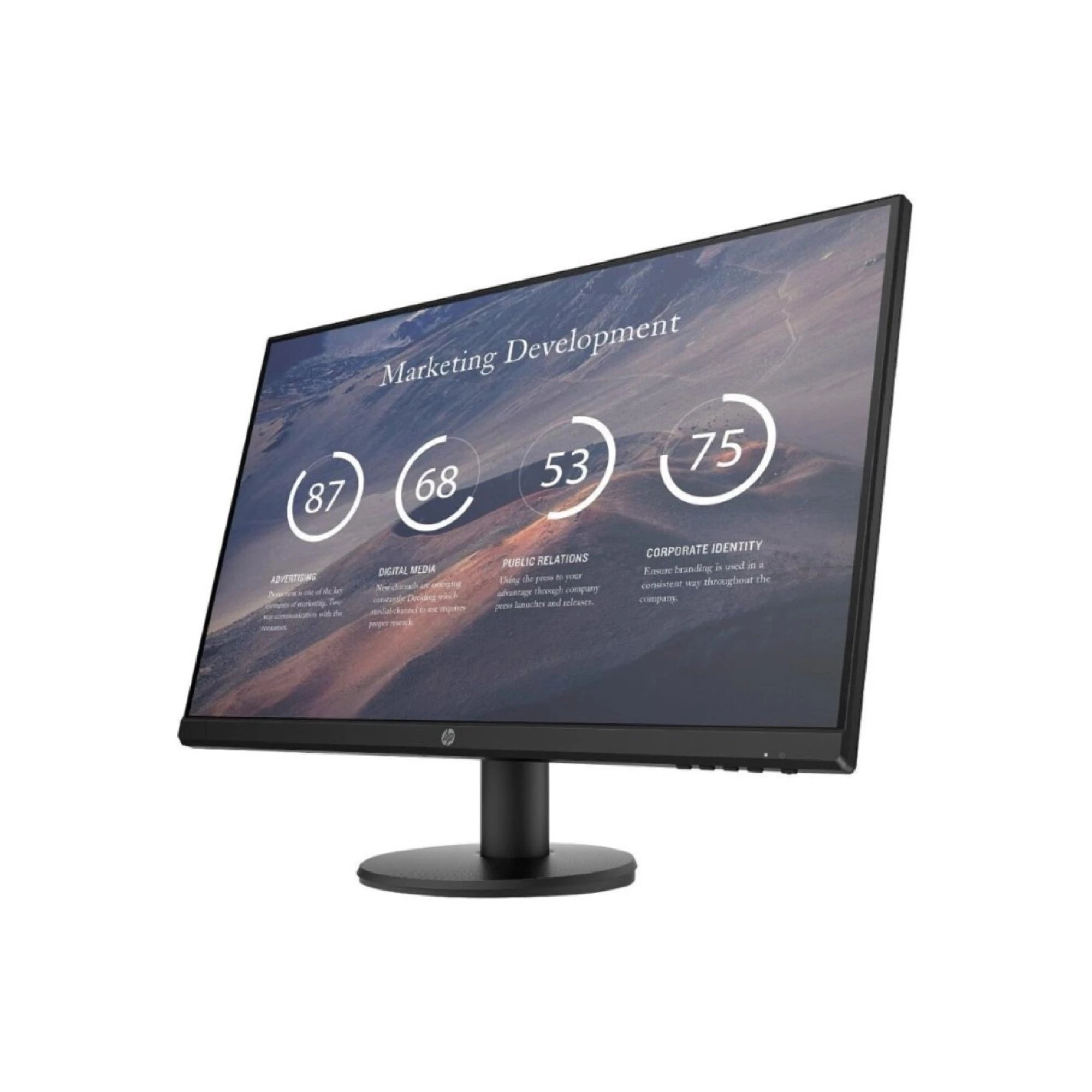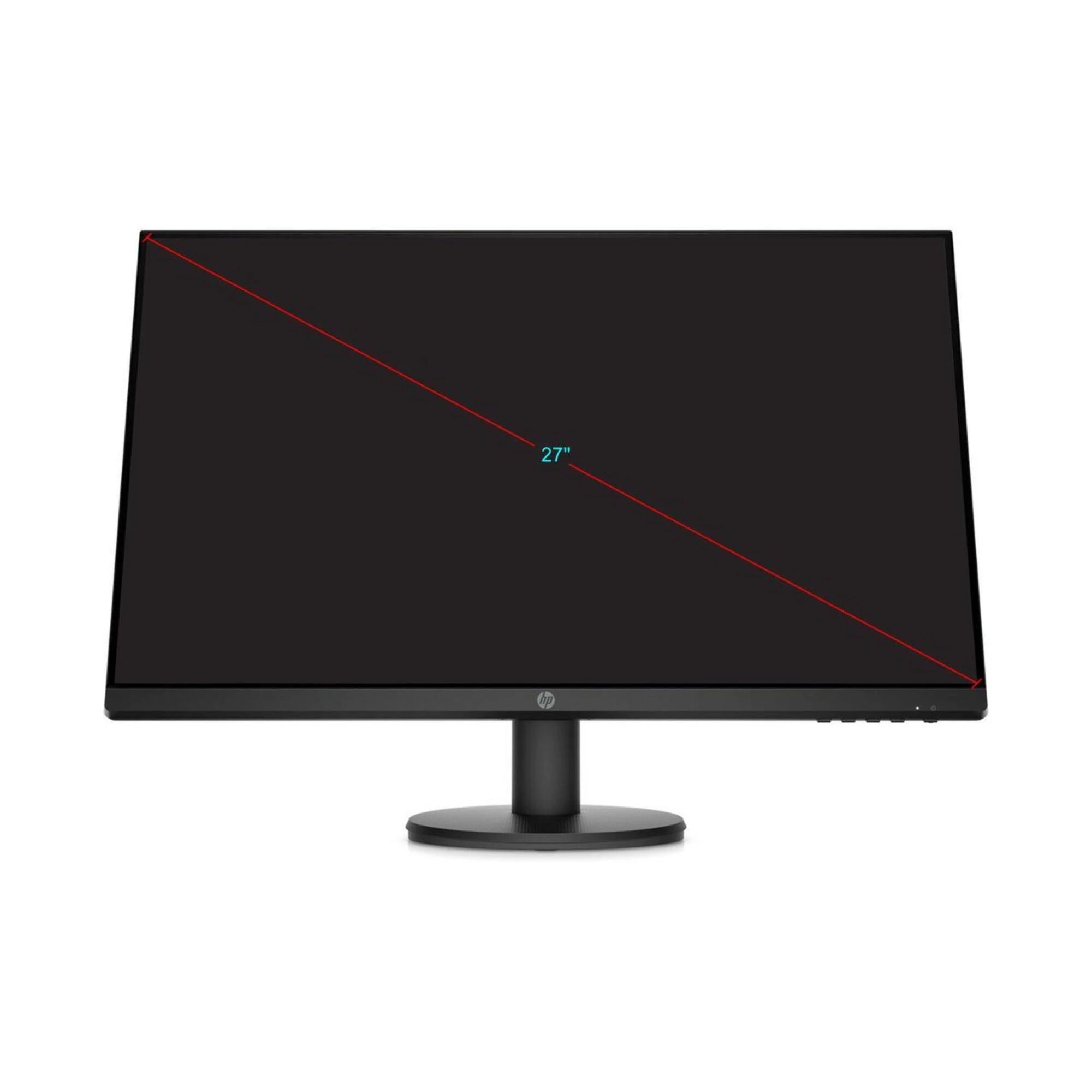 Product overview27″ IPS Panel w/ LED 1920 x 1080 FHD Resolution 178° Viewing Angle 16:9 Widescreen Ratio VGA and HDMI 1.4 Connectivity 3-sided Micro-edge Bezel Tackle your daily to-do list and multi-task across multiple windows on the extra-large 27″ diagonal HP P27v G4 Monitor that adjusts to your comfort needs and delivers Full HD picture quality with clear 178° sightlines. Crisp image clarity for all your content.Get lifelike color, sharp details, and a great view of everything you do, wherever you sit or stand, on a 27” diagonal Full HD IPS monitor with 178° viewing angles. Modern connectivity.Conveniently and quickly connect to your devices and additional monitors through the HDMI and VGA ports, no dongles required. Limitless views.See more of your actual screen and less of its borders with the 3-sided micro-edge design that also makes dual-monitor2 setups a seamless dream with almost no bezel interruptions. Key FeaturesMake conscientious buying choices.Choose a monitor that’s TCO and ENERGY STAR® certified to help meet your environmental buying requirements. Personalize your comfort settings.See your screen in a whole new light with HP Low Blue Light, which shifts the color spectrum for more comfortable viewing. Tilt the screen up to 5° forward or 20° back to find your best viewing position. We have your back.Rest assured that your IT investment has a long lifecycle and is supported with our three-year standard limited warranty. To extend your protection, select an optional HP Care Pack service. In the box